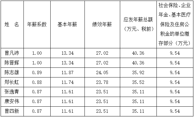 根据漳州市国资委及《公司董事长、经理班子年薪方案》的有关规定,公司董事长、经理班子的薪酬由基本年薪、绩效年薪、任期激励收入三部分构成,同意将公司董事长及经理班子人员2019年度薪酬方案修订如下: