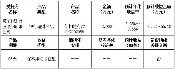本次委托理财金额:委托厦门银行理财8,000万元。