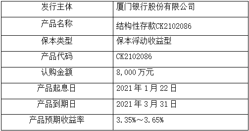 委托理财受托方:厦门银行股份有限公司(以下简称“厦门银行”)。