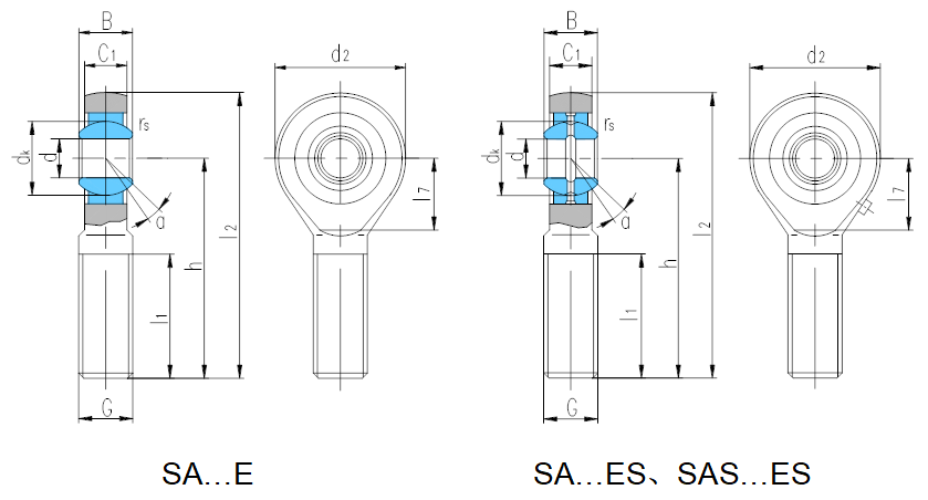 产品特点:组装杆端关节轴承由杆端体和向心关节轴承GE…E或GE…ES组装而成,杆端体材料是碳钢,表面镀锌;除型号后置代号为E外,其余型号可通过油杯或杆端眼孔润滑。