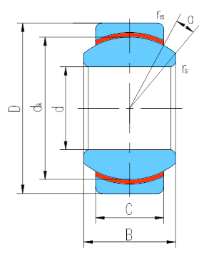产品特点:内、外圈材料均为轴承钢,淬火,球面衬有PTFE塑料,内圈球面镀硬铬。