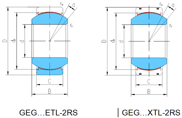 可提供密封圈为“2GS”和不带密封圈的向心关节轴承。