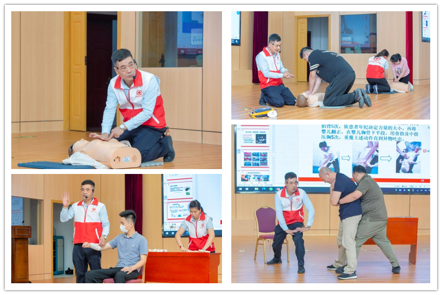 为向员工普及急救知识,提升急救技能,根据《2022年“安全生产月”活动方案》,公司于6月15日上午在蓝田三厂区东升国际官网入口集团大礼堂组织开展了一场急救知识和技能培训。培训邀请龙文区红十字会陈元福老师主讲,一位助教协助开展培训。